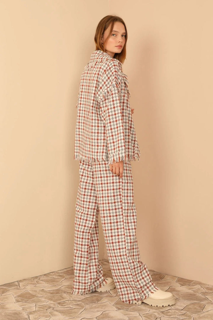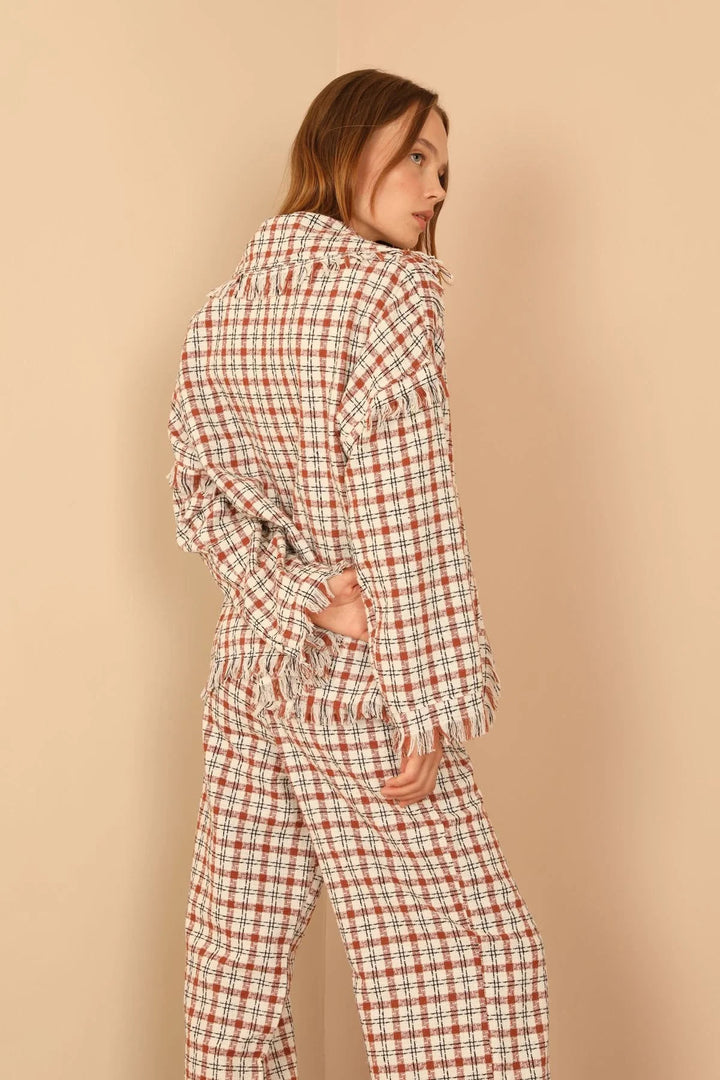 Tüvit Kumaş Uzun Kol Basen Boy Bol Kalıp Kadın Ceket-Taba