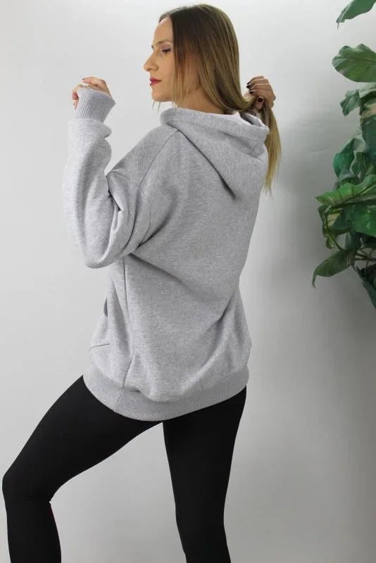 Üç İplik Kapşonlu Sweat Gri - 2410.2022