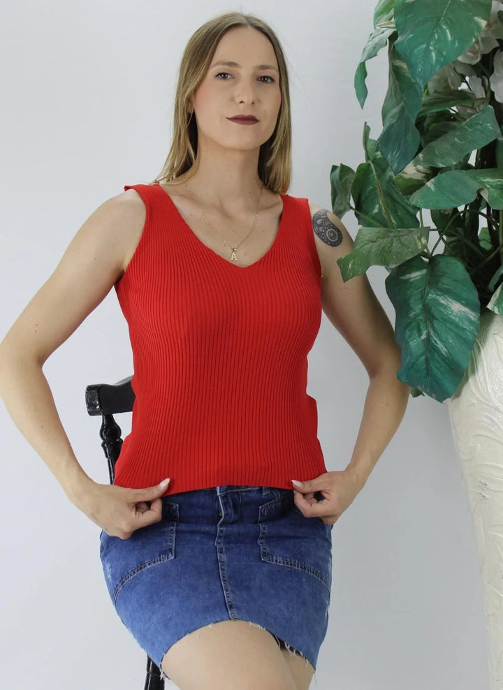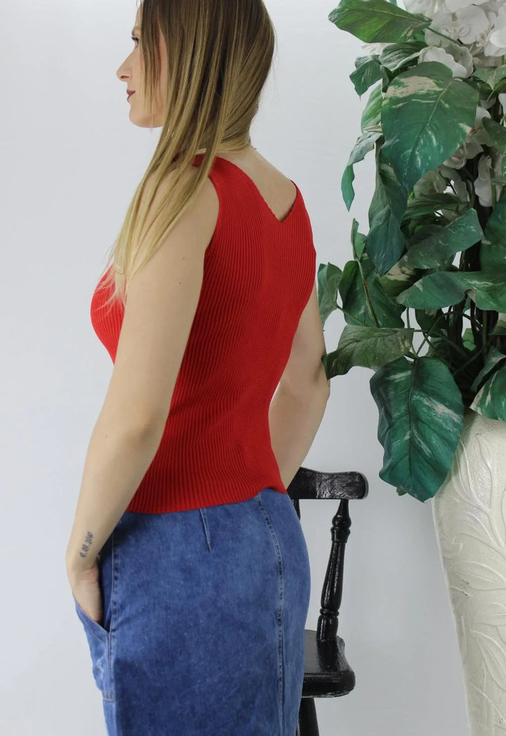 V Yaka Fitilli Triko Atlet Kırmızı - Lks1262.32
