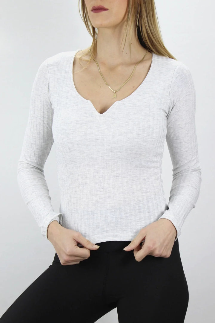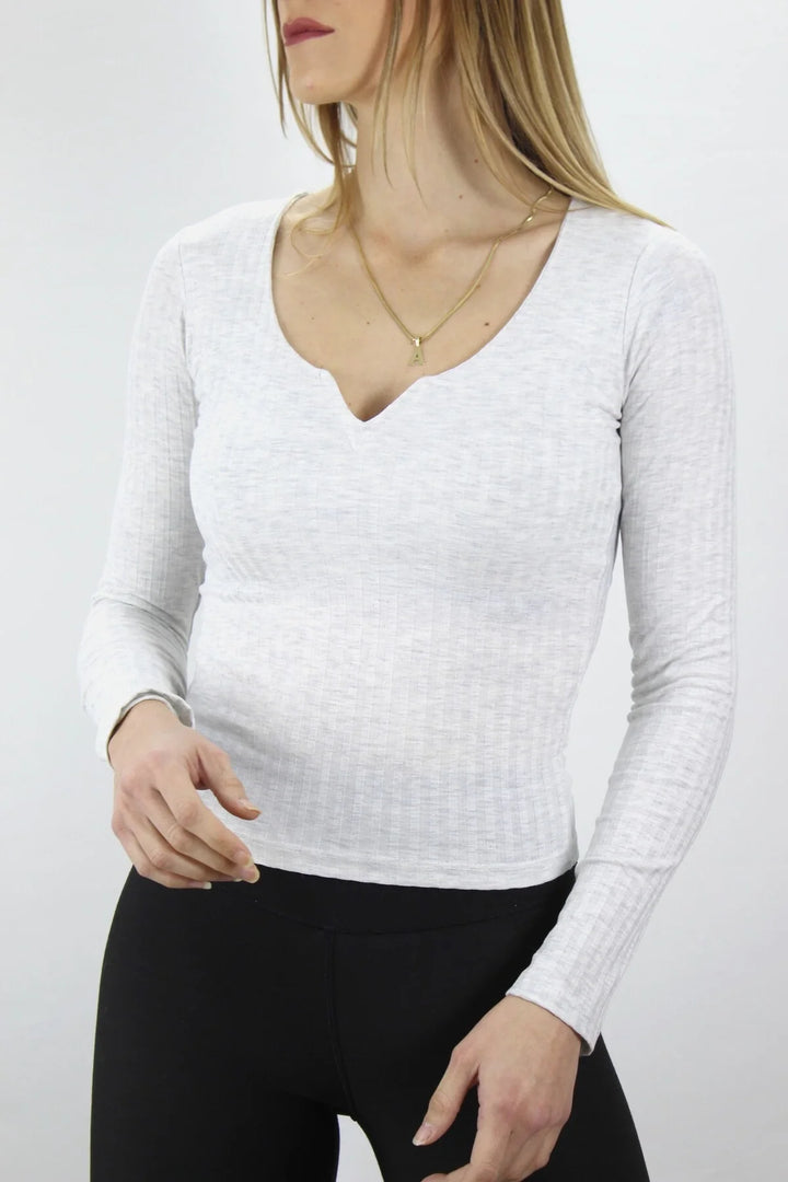 V Yaka Klipsli Bluz Açıkgri - 117.645