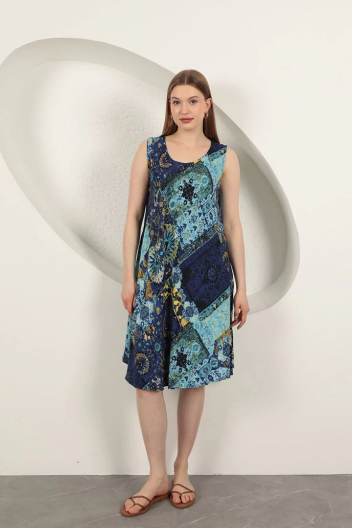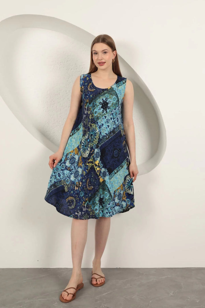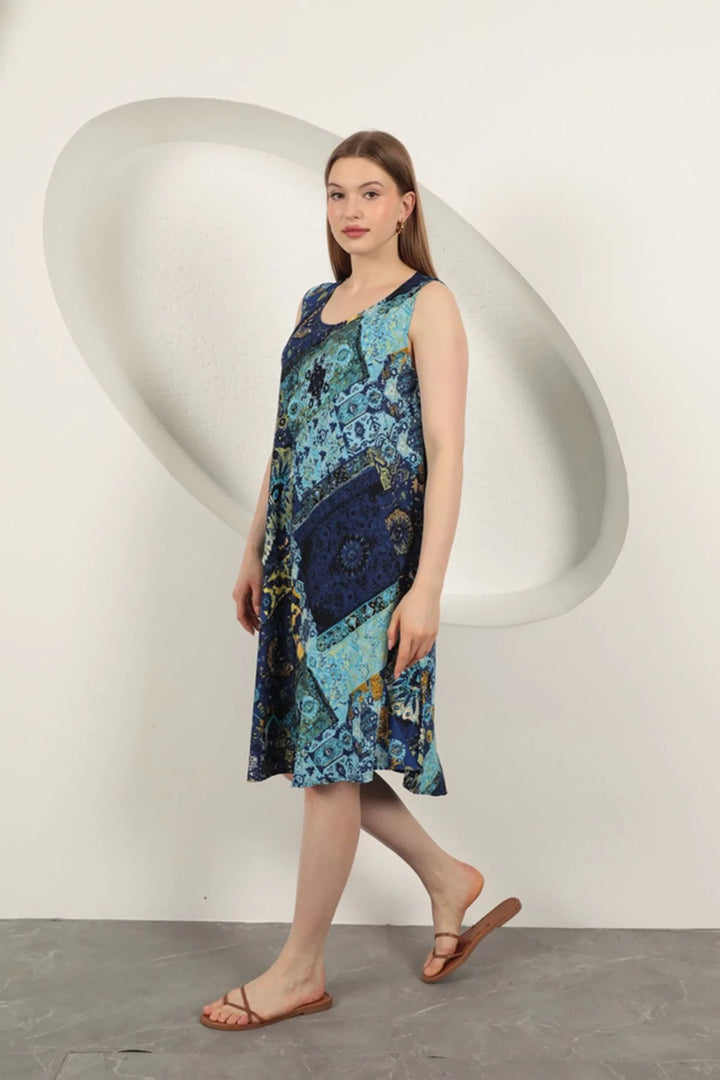 Viskon Kumaş Etnik Desenli Elbise-Saks